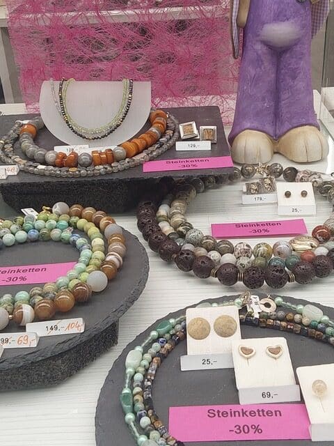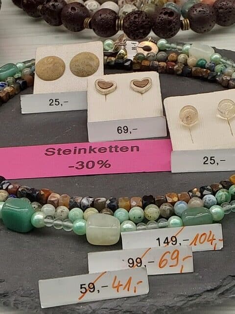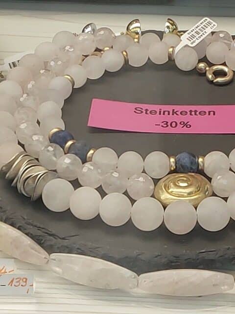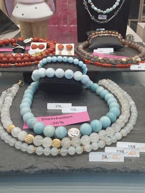 Wir haben für Sie unser gesamtes Sortiment an echten Steinketten, Lapislazuli, Schaumkoralle , Dumotierit, Serpentin, Amethyst, Türkis, Mondstein und vieles mehr…